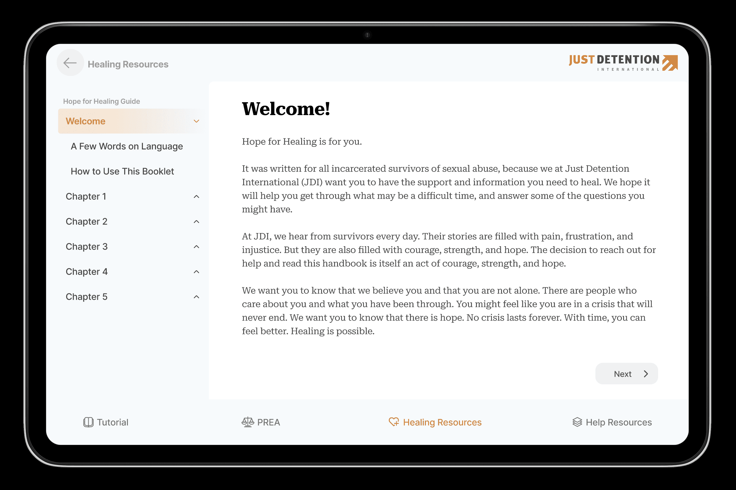 I led design for a modern way to support incarcerated individuals in navigating the topic of sexual abuse.