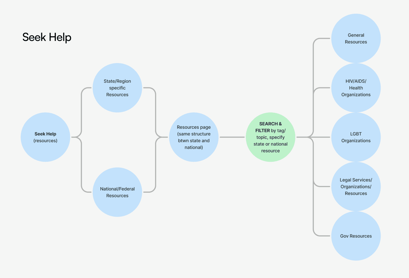 39% (7) of testers found the initial information hierarchy of the text-based reader to be confusing. 72% (13) of testers wished there was a better way to search for emotional and legal resources than just filters.